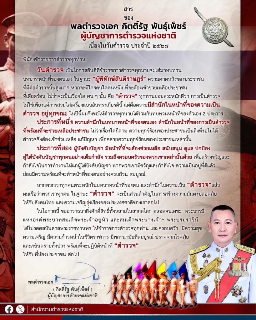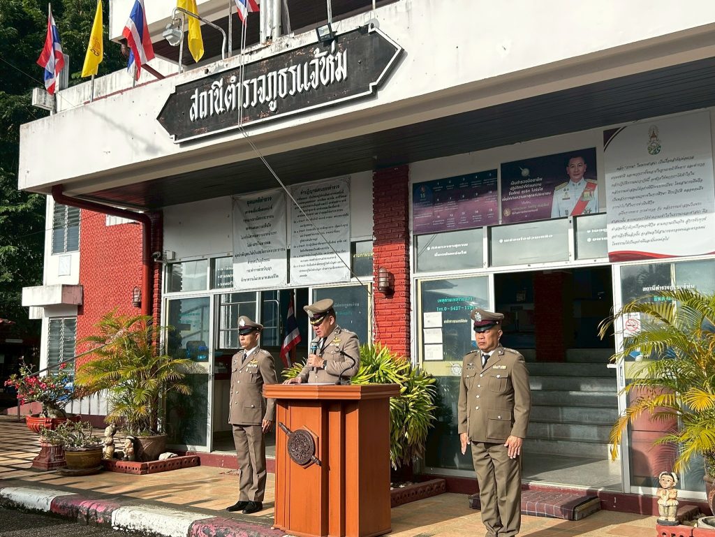 กิจกรรมวันตำรวจ ประจำปี 2568 18 ตุลาคม 2568 โดย admin / ข่าวภารกิจผู้บังคับบัญชา,ข่าวภารกิจผู้บังคับบัญชา,ตุลาคม 2568 สภ.แจ้ห่ม จว.ลำปาง วันที่ 17 ต.ค.68 ได้จัดวันกิจกรรมวันตำรวจ ประจำปี 2568 โดย พ.ต.อ.สมภพ สุภาพร ผกก.สภแจ้ห่ม และข้าราชการตำรวจแจ้ห่ม ได้ทำพิธีสวดมนต์ กราบไหว้เจ้าพ่อพญาคำลือ ปฏิญาณตนของตำรวจและมอบทุนการศึกษาให้แก่บุตรของข้าราชการตำรวจในสังกัด จากนั้นก็รับสารของ พล.ต.อ.กิตติ์รัฐ พันธุ์เพ็ชร์ ผู้บัญชาการตำรวจแห่งชาติ เนื่องใน “วันตำรวจ” Facebook iconFacebookTwitter iconTwitterLINE iconLine