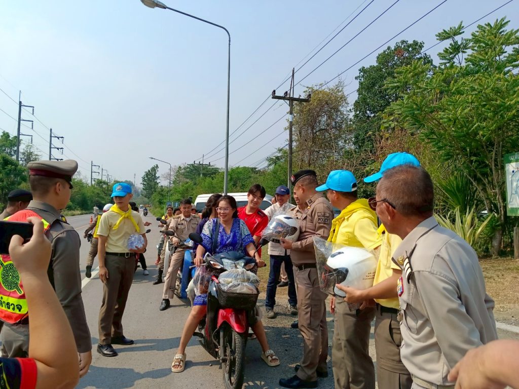 วันที่ 11 เม.ย.68 เวลา 09.30 น. โดยการนำของ พ.ต.อ.สมภพ สุภาพร ผกก.สภ.แจ้ห่ม, พ.ต.ท.ปีติกร เพิ่มการ รอง ผกก.ป.สภ.แจ้ห่ม, พ.ต.ท.เชี่ยวชาญชัย จิตเร็ว สวป.สภ.แจ้ห่ม, ชุดจิตอาสา, ชุดจราจร สภ.แจ้ห่ม ร่วมกันแจกหมวกนิรภัยซึ่งได้รับมาจากสำนักงานตำรวจแห่งชาติ เพื่อมอบให้กับประชาชน ในโครงการจิตอาสาจราจร รณรงค์ขับขี่ปลอดภัยสวมหมวกนิรภัย เพื่อลดอุบัติเหตุจราจรทางบก ในช่วงเทศกาลสงกรานต์ ประจำปี พ.ศ.2568 โดยแจกให้กับประชาชนผู้ขับขี่รถจักรยานยนต์ที่ไม่สวมหมวกนิรภัยที่สัญจรผ่านจุดตรวจร่วมบูรณาการตำบลบ้านสา รวมไปถึงการประชาสัมพันธ์เกี่ยวกับความปลอดภัยบนท้องถนน และการรักษาวินัยจราจรอย่างเคร่งครัด เพื่อลดอุบัติเหตุในห้วงเทศกาลสงกรานต์ 2568